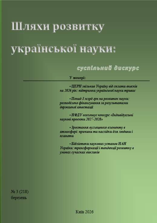 Пропонуємо вашій увазі черговий випуск (№3 (218), березень 2026 року) інформаційно-аналітичного бюлетеня «Шляхи розвитку української науки: суспільний дискурс», підготовленого у Національній бібліотеці України імені В.І. Вернадського.