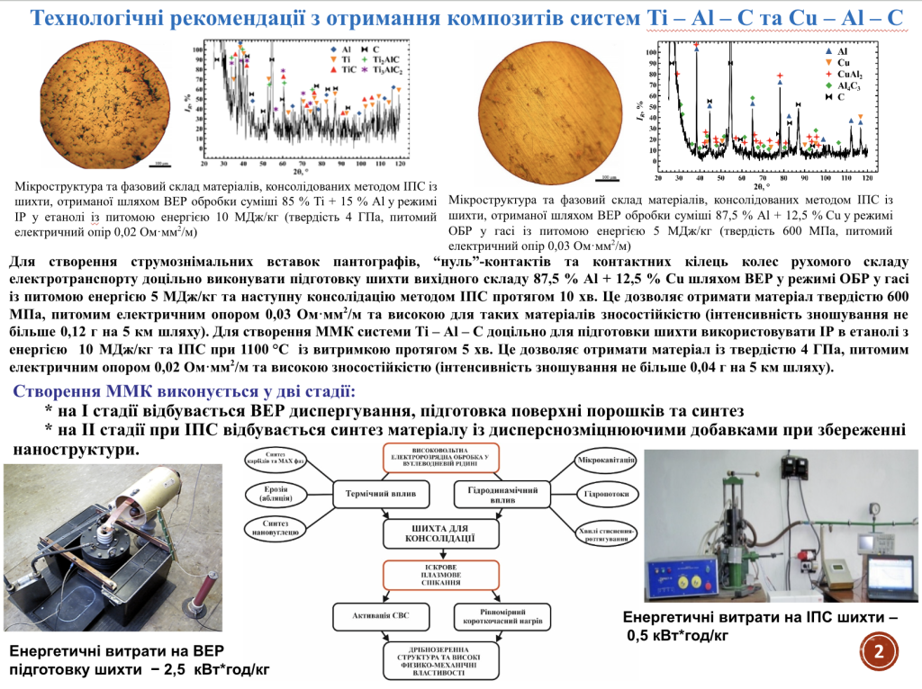 – Розроблено наукові основи високоенергетичного синтезу функціональних наноструктурованих матеріалів на основі Tі, Al, Cu та С.